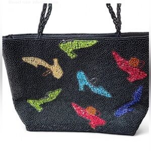 🖤Ingio Christopher🖤 Black Beaded Colorful High Heals Handbag