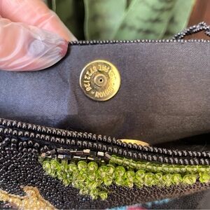 •Beautiful beaded bag with beaded straps •Measures approximately 9.5 inches wide and 7 inches tall