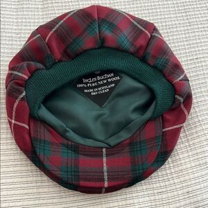 Stylish tartan beret made from 100% pure new wool. Features a classic red and green plaid pattern. Made in Scotland.