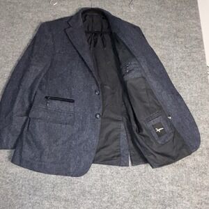 Elevate your wardrobe with this Ingram Italian Wool Blazer. Crafted from 100% virgin wool in a rich navy herringbone weave, this sport coat offers timeless sophistication with modern detailing, including a rare horizontal zip pocket at the front. Perfect for both professional and smart-casual settings.