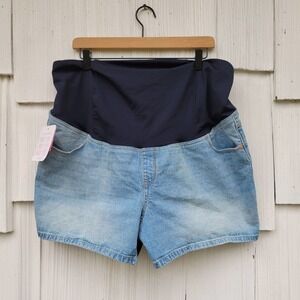 Ingrid & Isabel Maternity Denim Midi Short Crossover Panel 16 NWT