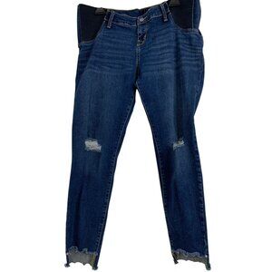 Ingrid & Isabel Maternity Skinny Jeans Size 12 Distress Denim Crop REE10507 GUC