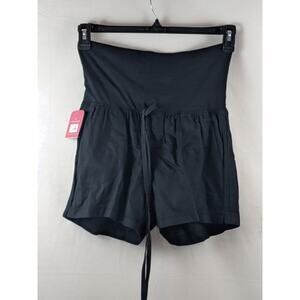 Ingrid & Isabel Twill Maternity Pull On Shorts Black XS Pockets Drawstring Comfy