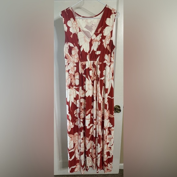 Ingrid & Isabel sleeveless maternity maxi dress featuring a stunning red and white floral pattern. Has a tie around waist. Perfect for any occasion. Size XL. Worn once, in great condition.
