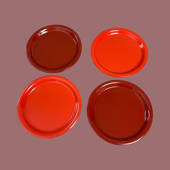 Ingrid Ltd Chicago Vintage Melamine Dinner Plates Red Orange 10.5" Set of 4 MCM