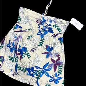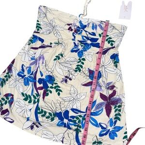 Stylish strapless top by Ingrid & Isabel with a beautiful floral design. Features shades of blue, purple, and green on a light background. Ideal for any occasion.