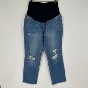Ingrid and Isabel Straight Crop Distressed Over The Belly Maternity Jeans 10