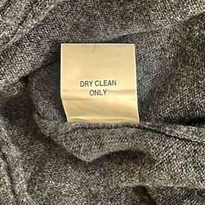 Fold-Down style turtleneck neckline ~ Long sleeves with dropped shoulder seams ~ Straight hemline with slits on the bottom/sides … hemline is slightly longer in the back ~ Oversized loose fit ~ Pullover styling … no closures ~ Soft unlined 100% cashmere knit fabric … Wide horizontal ribbing at the hem ~ Solid gray-blue color … color is called “Charcoal”