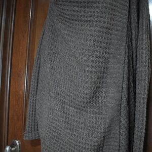 Style: Waffle knit, wrap/tie front, poncho pockets