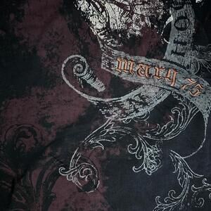 This tee is a bold blend of gothic and streetwear flair, featuring an oversized distressed print that makes a fierce visual statement. A perfect pickup for fans of graphic-heavy, vintage-inspired styles.