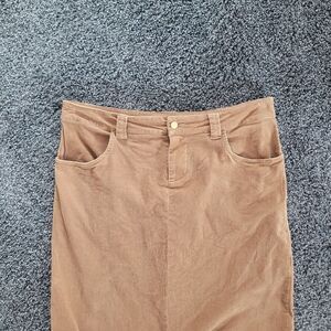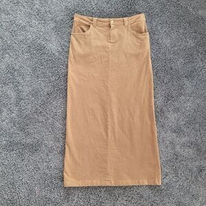 Inherit Gwen Camel Corduroy Modest Long Maxi Skirt Pockets Back Slit Size 8