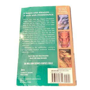 Christopher Paolini's "Inheritance," the concluding book in the Inheritance Cycle series, immerses readers in a captivating fantasy world. This first edition paperback is a must-have for fans of the series and collectors alike.