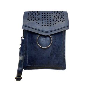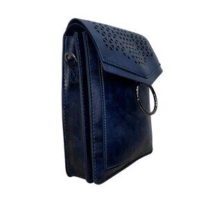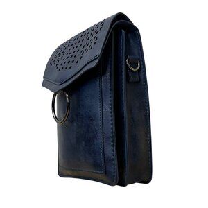Inicat Women’s Blue Faux Leather With Cutout Design & Ring Accent Crossbody Bag