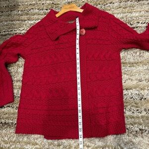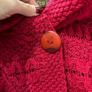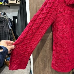 Inis Craft Large Cardigan Merino Wool Sweater One Button Cable Knit Red