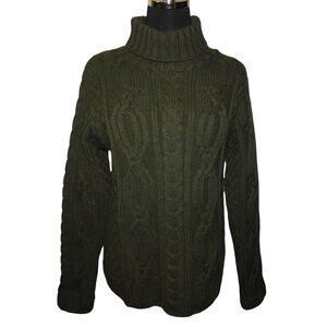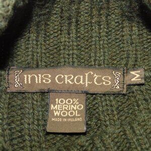 Inis Crafts 100% Merino Wool Made In Ireland Olive Green Vintage Sweater