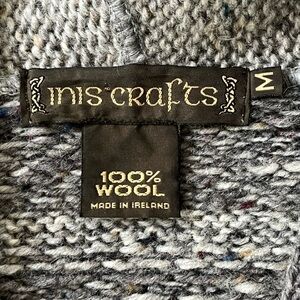 Inis Crafts 100% Wool Irish Knit Hooded Zipper Sweater Grey Tweed Women M