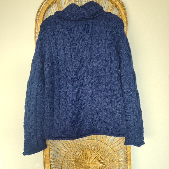 Inis Crafts 100% Merino Wool Cable Knit Chunky Cozy Turtleneck Sweater Small