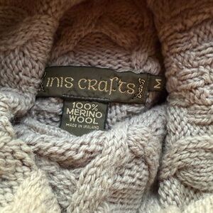Inis Crafts Beige Cable Knit 100% Merino Wool Cowl Neck Sweater Women's M