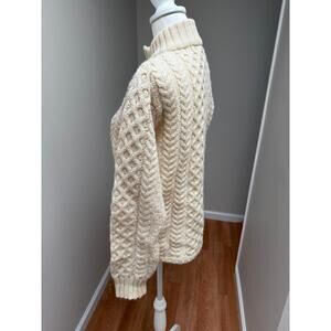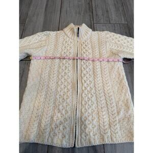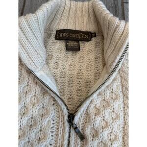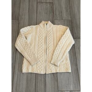 Inis Crafts Fishermens Sweater Womens Medium Cream Cable Knit Merino Wool Zip