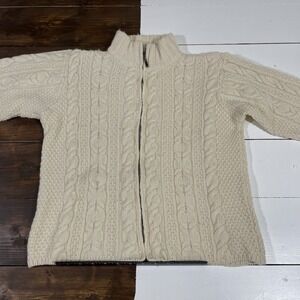 Inis Crafts Full Zip Cable Knit Sweater Sz M Ivory Merino Wool Ireland