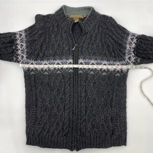 Excellent condition, no stains or flaws, measurements in photos, smoke, free home. Style tags: winter, wool, Irish sweater, cable Knit full zip, pockets, cabin, cozy, ski chalet, outdoors.