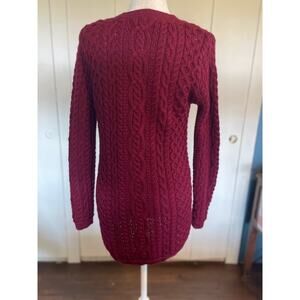 Inis Crafts Irish 100% Merino Wool Long Cardigan Women's Size Medium Burgundy