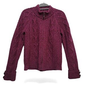Inis Crafts Merino Wool Aran Cable Knit Zip Cardigan Sweater