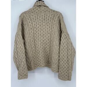 Inis Crafts Sweater Womens M Tan Wool Turtleneck Cable Knit Ireland Fisherman