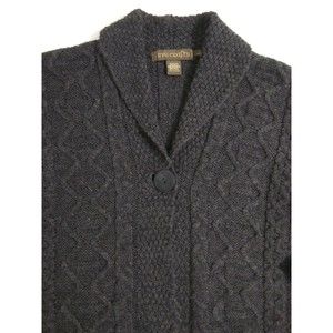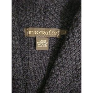 Inis Crafts Women's Large Merino Wool Dark Gray Cardigan Button Sweater