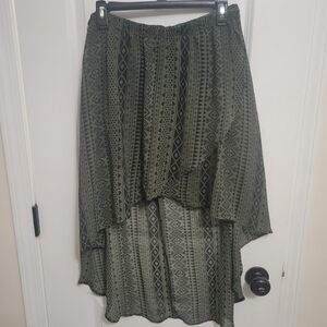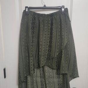Inis Tribal Geometric High-Low Asymmetrical Skirt Dark Green and Black