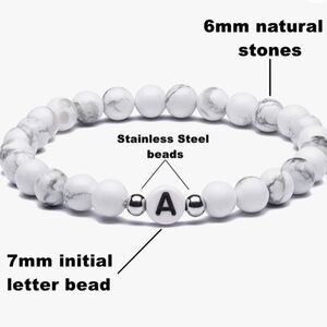 Natural stone jewelry Unisex Men’s male Women’s female black and white Initial letter A monogram natural howlite stone stretch bracelet New See pictures for measurements