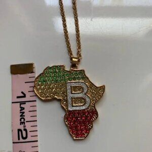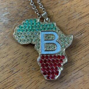 Initial B- tri colored rhinestone Africa pendant (mens listing)