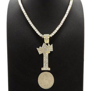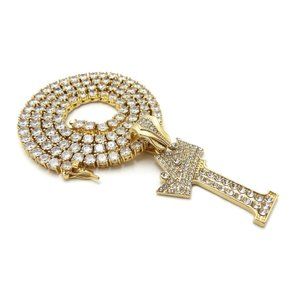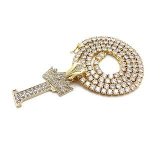 Initial Letter "I" Pendant Tennis Chain Necklace