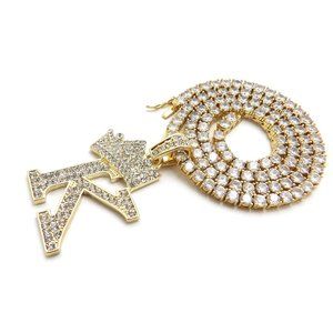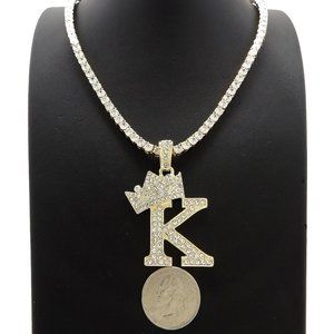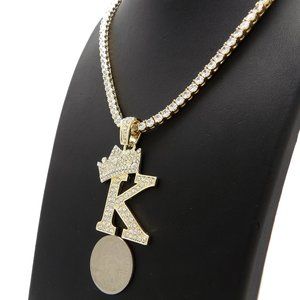 Initial Letter "K" Pendant Tennis Chain Necklace