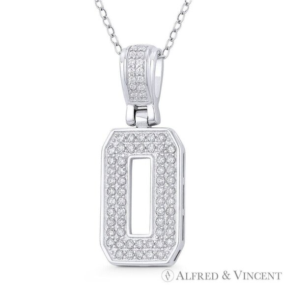 Initial Letter "O" Block Script CZ Pendant in .925 Sterling Silver w/ Rhodium