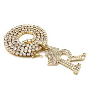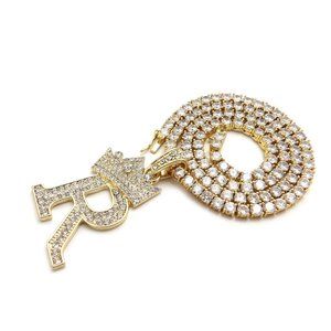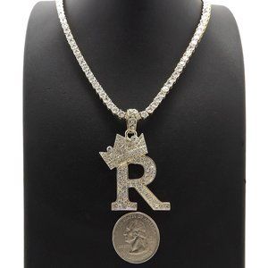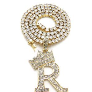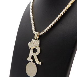 Initial Letter "R" Pendant Tennis Chain Necklace