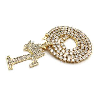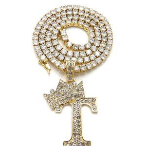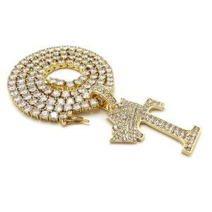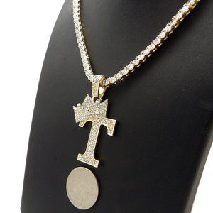 Initial Letter "T" Pendant Tennis Chain Necklace