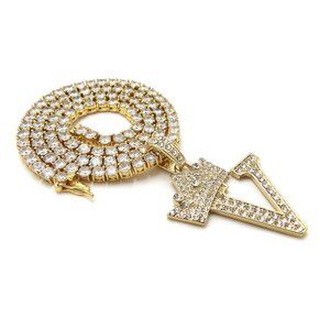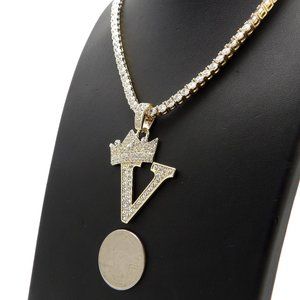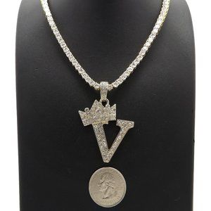 Initial Letter "V" Pendant Tennis Chain Necklace
