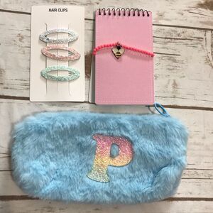 Initial P Bag Zipper Pouch Mini notebook hair accessories bracelet bundle monogr