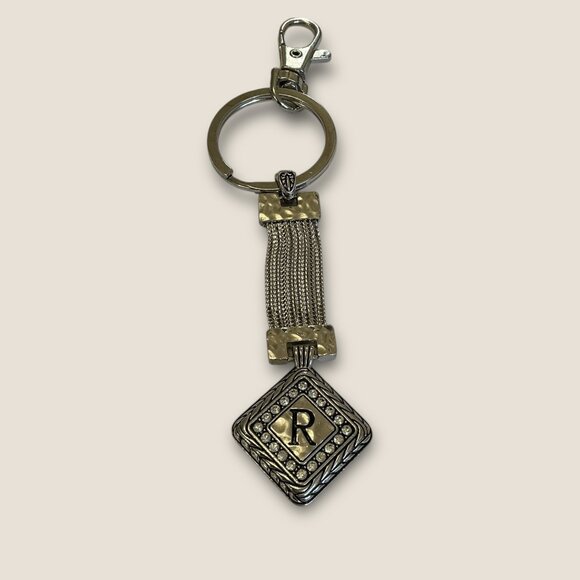 Initial R Vintage Two-Tone Rhinestone Keychain Purse Charm