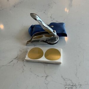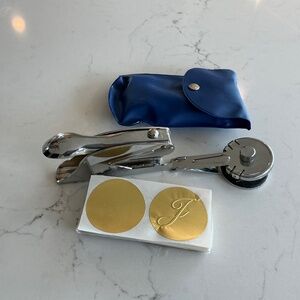 2 piece attaches easily and stores in pouch. Sheets of gold foil stickers included ( total over 80 stickers). Perfect for gift giving or labeling.