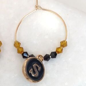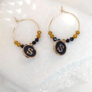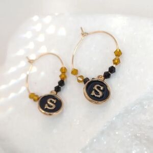 Tiny glass Crystal Gemstones with Round Golden and Black Round Initial Charm