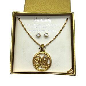 This stunning Initial Pendant Necklace and Earrings Set features genuine Austrian crystals and an 18-inch length chain. The set includes a beautifully designed 'M' pendant.