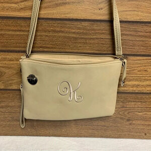 Initials, Inc taupe slim purse plenty of storage adjustable strap K initial