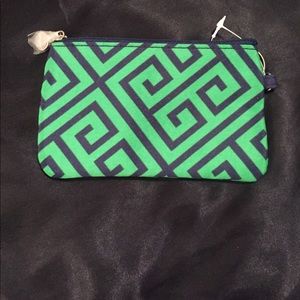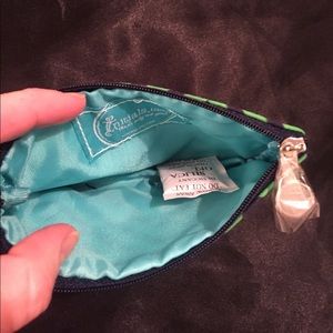 Initials brand new wallet keychain green navy, zipper closure, turquoise inside, 5.75" wide, 3.5" deep