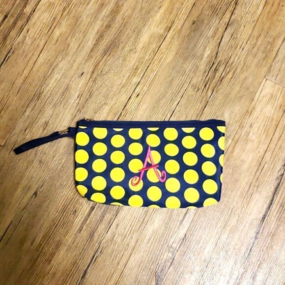 "A" monogrammed polka dot pouch