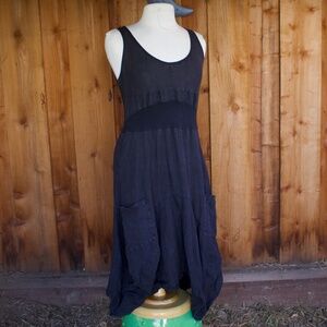 Inizio 100% Linen Magic 2 Pocket Black Sleeveless Dress Made In Italy Size L