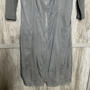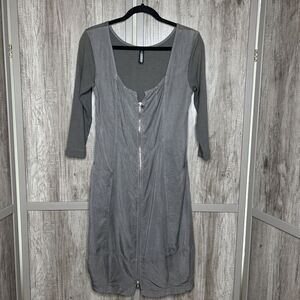 Inizio Dress Full Zip Closure Ribbed Tencel Taupe Gray Pockets Made in Italy M