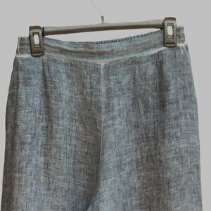 Inizio Italy Women Size S Linen Cropped Pants Buttons Blue/Gray Flowy Beachy