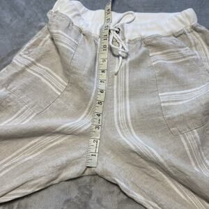 Inizio Linen Pants Beige Striped Wide Leg Drawstring Elastic Waist Made in Italy